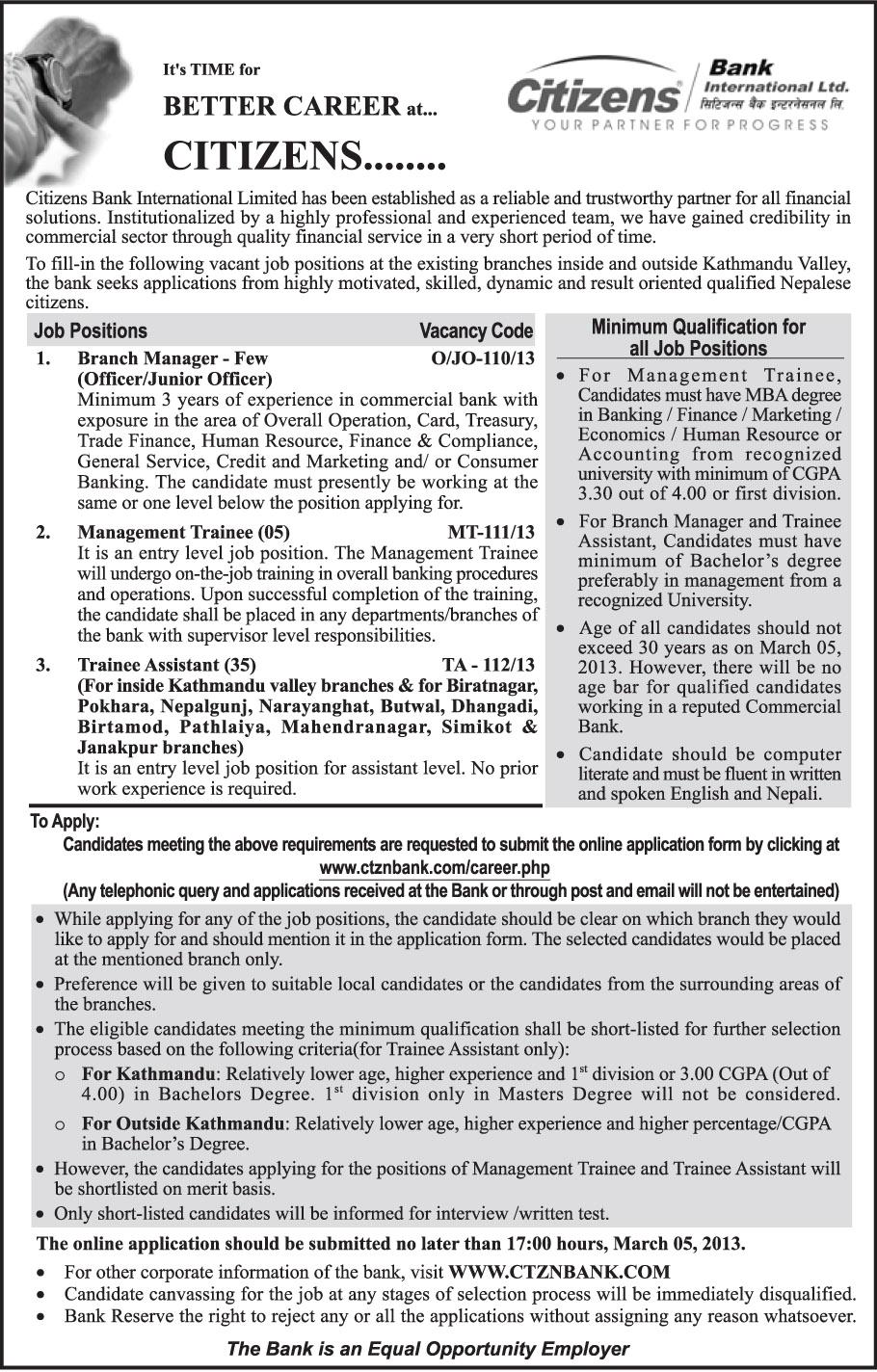 Whenever a job seeker applies for a junior assistant role in a new company, he/she must signal their value through multiple mediums. The bank made public offering on 3rd bhadra, 2067 for 3,00,000 shares. Due to the impeccable automation, we have reached through almost a decade, we manage to keep an impressive balance. Top job search materials for bank assistant manager the below materials are availabe at: